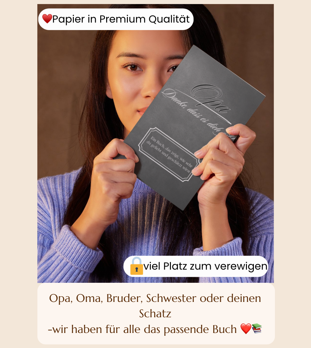 Ob für Großeltern, Eltern, den Partner oder gute Freunde – diese Bücher bieten Platz für besondere Erinnerungen, gemeinsame Erlebnisse und all das, was ein Herz erfüllt. So entsteht ein persönliches Geschenk, das Menschen über Jahre hinweg berührt und verbindet.
